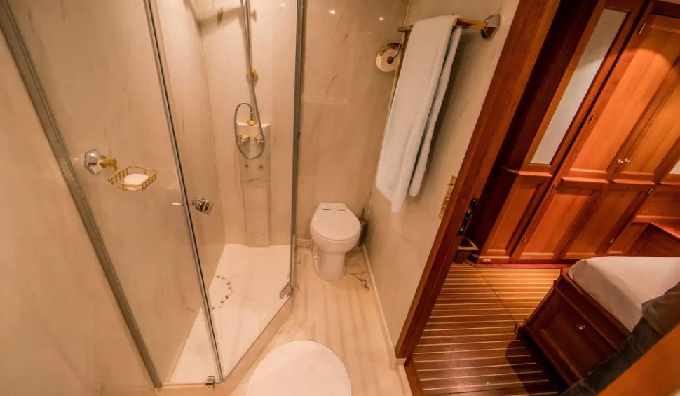 The owner’s and VIP cabins each offer double beds and generous storage. Two guest cabins and two crew cabins (for 4) complete the layout, all built on silent blocks for superior insulation.